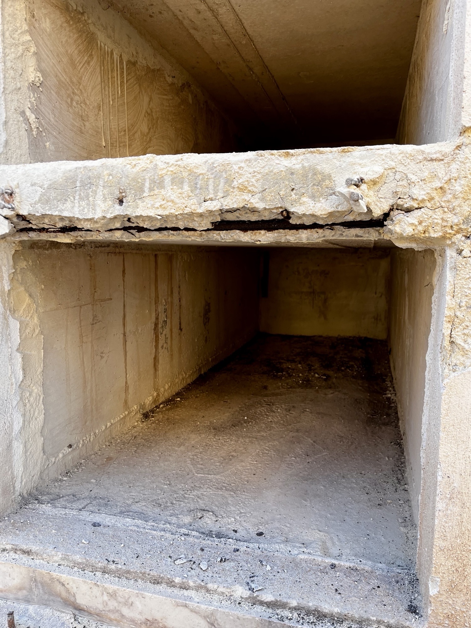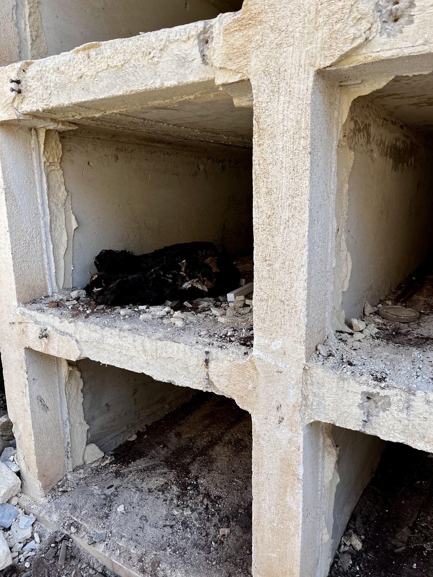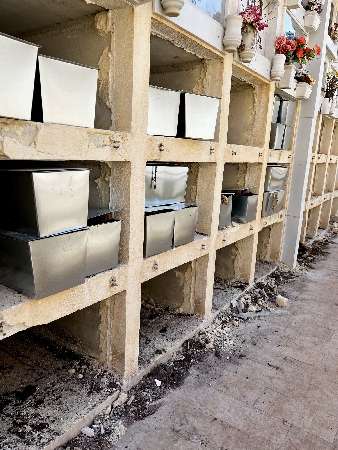 I loculi messi a disposizione risultano essere stati svuotati da resti di defunti sepolti da oltre novant’anni e riutilizzati senza aver fatto prima alcun intervento di ripristino, disinfezione o manutenzione, le strutture appaiono in totale stato di abbandono: calcestruzzo spaccato, armature in ferro a vista, in poche parole in uno stato che definire indecoroso è purtroppo riduttivo.