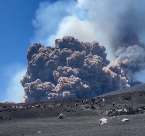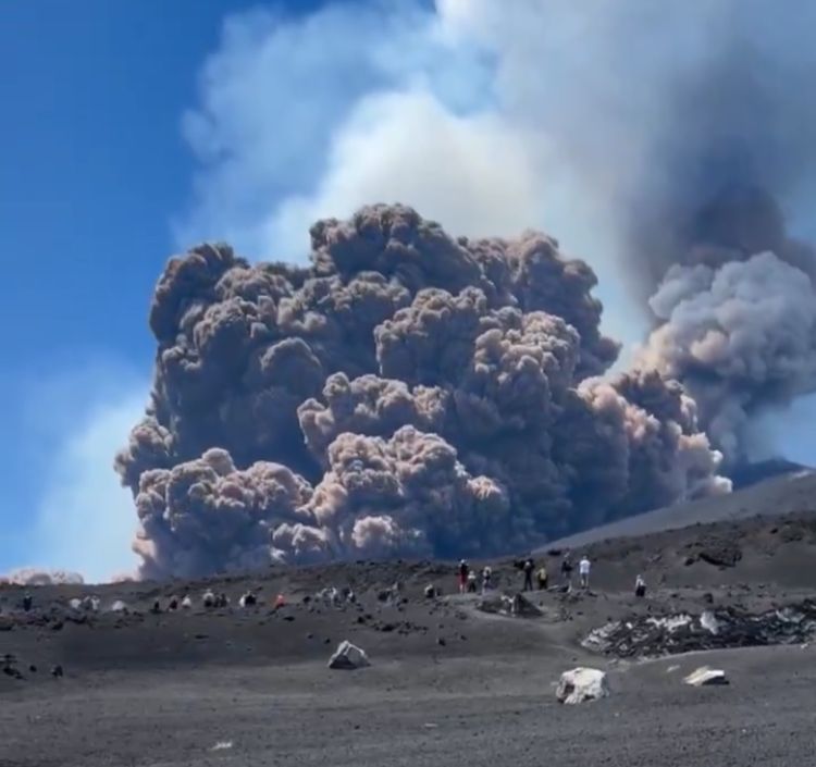 na consistente e alta, almeno alcuni chilometri, nube eruttiva sovrasta l’Etna.