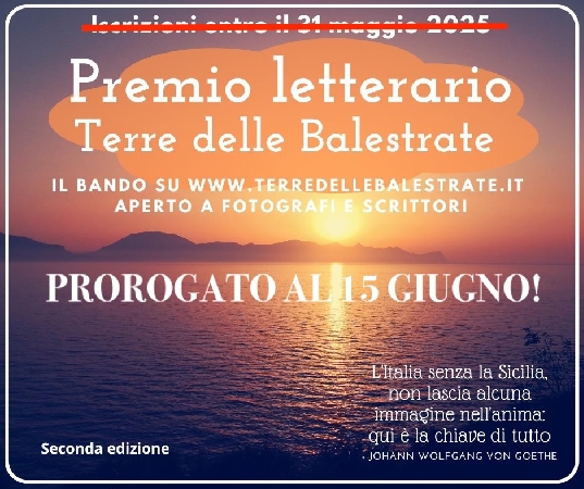 Una vera e propria ondata di partecipazioni ha travolto la seconda edizione del premio letterario e fotografico nazionale Terre delle Balestrate, con adesioni da ogni angolo d’Italia: dal Piemonte alla Calabria, dalla Lombardia alle Marche, passando naturalmente per un’ampia rappresentanza dalla Sicilia. Un successo che ha spinto il comitato organizzatore, guidato dalla cooperativa omonima, a prorogare il termine per le iscrizioni fino al 15 giugno 2025.