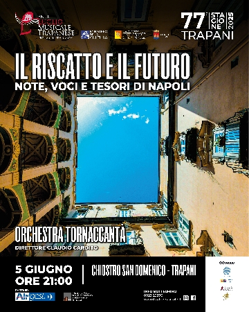 L'Orchestra Tornaccantà è protagonista al Luglio Musicale Trapanese con il concerto "Il Riscatto e il Futuro - Note, Voci e Tesori di Napoli" in programma il 5 giugno alle ore 21.00 presso il suggestivo Chiostro San Domenico di Trapani.