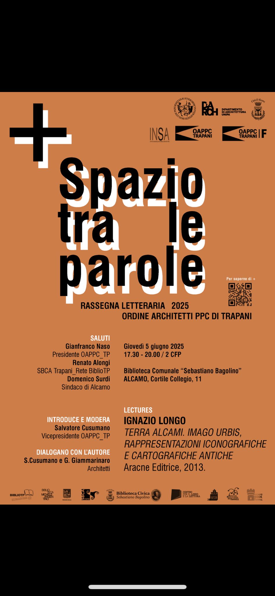La rassegna, organizzata dall’Ordine degli Architetti di Trapani, dalla Fondazione Architetti nel Mediterraneo "Francesco La Grassa" e da altre istituzioni locali, si propone di creare uno spazio di riflessione sulla qualità della vita e sull'importanza di un buon equilibrio tra spazio fisico e simbolico. Il titolo della rassegna, infatti, richiama l'idea che, come un buon architetto sa progettare ambienti che favoriscono il benessere, una buona parola può stimolare nuove prospettive e arricchire il pensiero. Il libro di Longo, “Terra Alcami”, esplora la storia urbana della città di Alcamo, ricostruendo le sue origini e i mutamenti attraverso rappresentazioni cartografiche e iconografiche antiche. L'autore, noto per la sua esperienza nella ricerca storica e cartografica, è un esperto delle fasi storiche del territorio e dei centri fortificati siciliani. Durante l'incontro, Longo racconterà la storia di Alcamo in modo coinvolgente, portando il pubblico alla scoperta delle radici della città.
