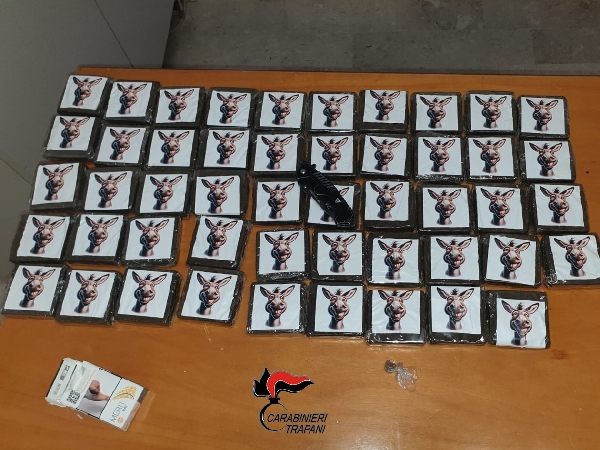 suddivisi in 49 panetti e un coltello a serramanico, il tutto posto sotto sequestro.