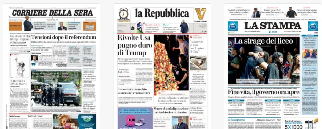 E' l'11 Giugno 2025. Ecco i principali fatti in Italia e nel mondo ed i titoli dei quotidiani.