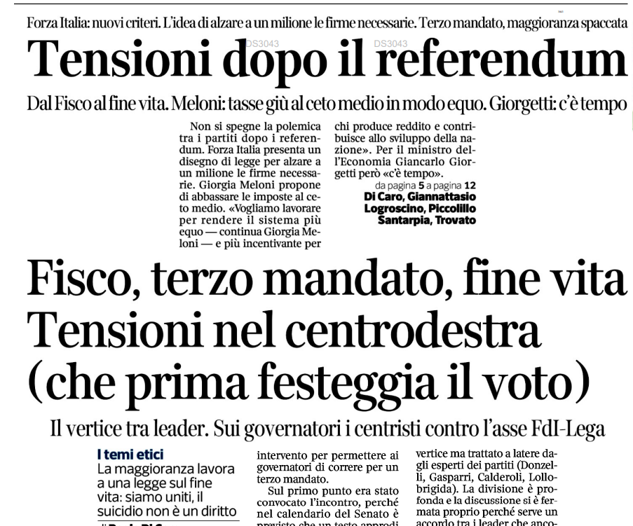 Qn: Fisco e terzo mandato / Tensioni in maggioranza