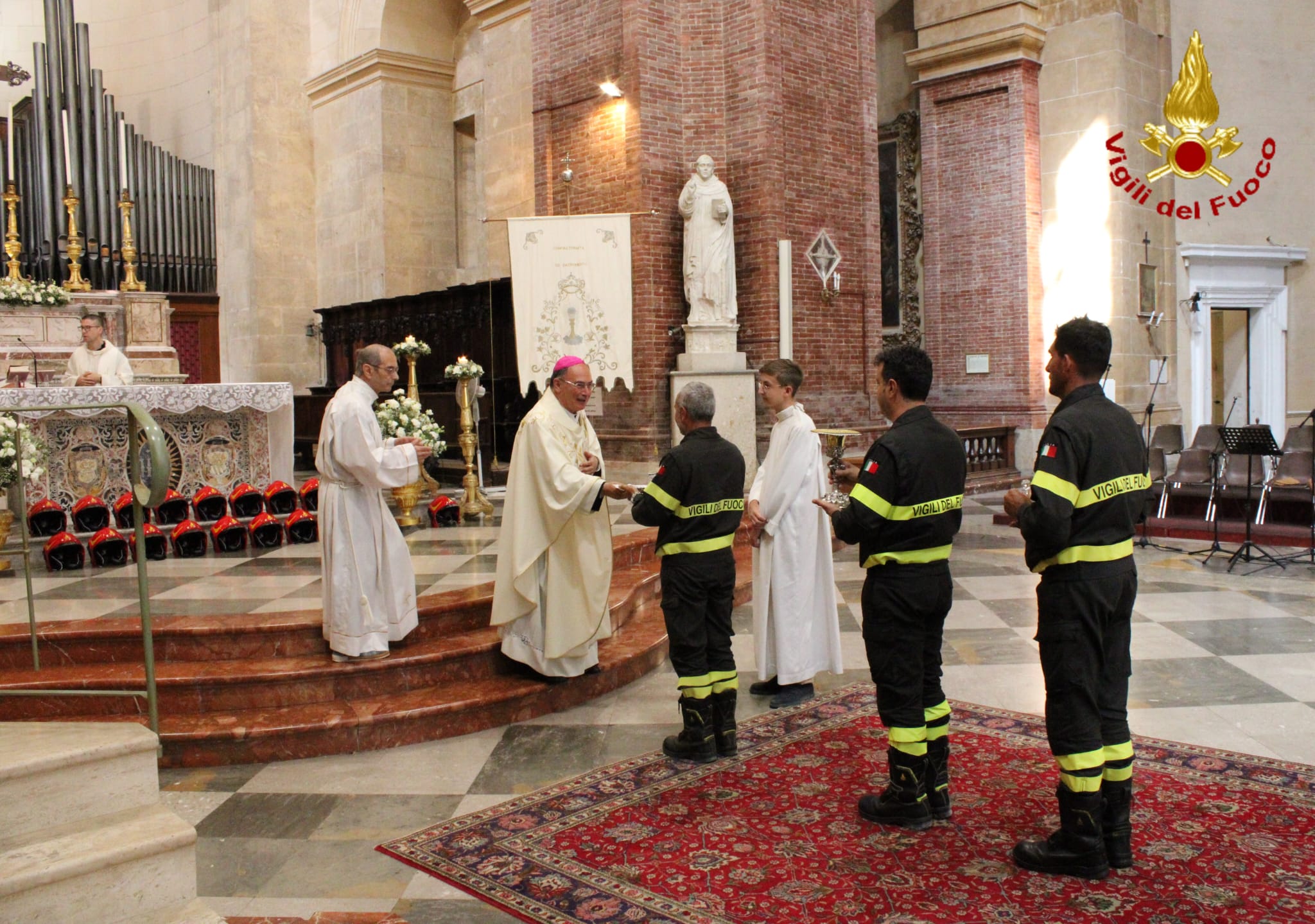 Questa mattina, nella Chiesa Madre di Marsala, al termine della celebrazione della Santa Messa in onore di San Giovanni, co-Patrono della città, officiata di S.E. monsignor Angelo Giurdanella - Vescovo di Mazara del Vallo, ha avuto luogo una semplice ma tanto suggestiva e tanto sentita cerimonia della benedizione degli elmi, collocati ai piedi dell'altare, dei 18 neo Capi Squadra provenienti da tutte le sedi di servizio dei Vigili del Fuoco della provincia, che hanno superato il corso di formazione durato 3 mesi.