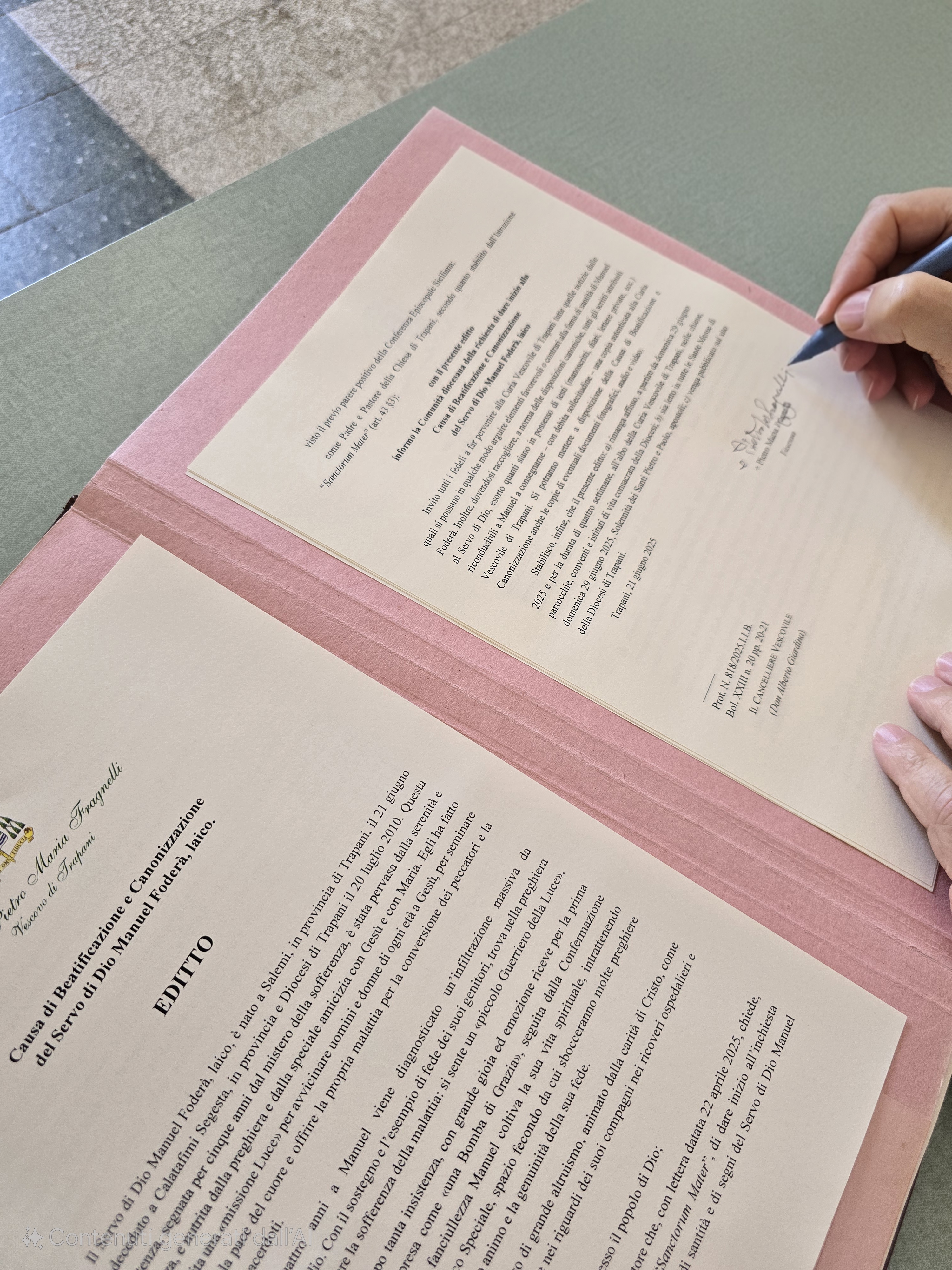 Nel testo dell’editto, il vescovo invita i fedeli a far pervenire alla Curia “tutte quelle notizie dalle quali si possano in qualche modo arguire elementi favorevoli o contrari alla fama di santità di Manuel Foderà”. Viene inoltre richiesto che siano consegnati alla Curia eventuali scritti (manoscritti, lettere, diari) riconducibili a Manuel, unitamente a materiali fotografici, audio e video, utili alla documentazione della causa.