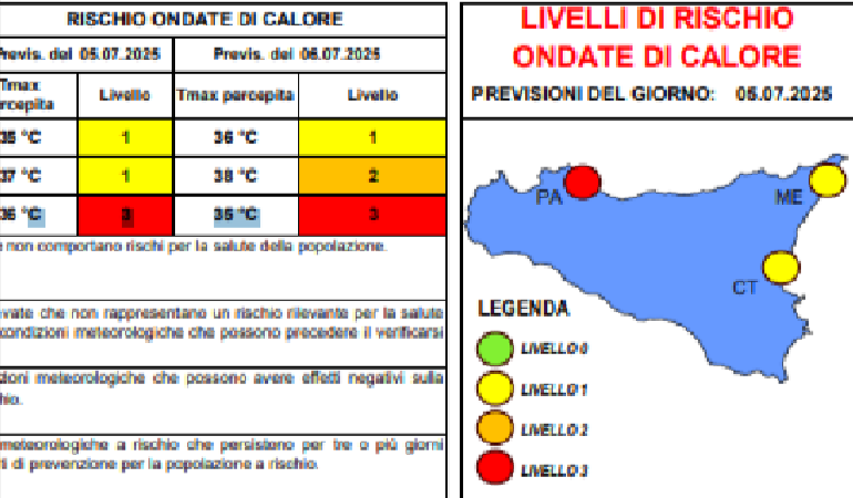 Per la città di Palermo permane il livello massimo di allerta per le ondate di calore, classificato come livello 3 (codice rosso). Le temperature percepite toccheranno i 36 gradi centigradi, mantenendo alta l’attenzione su fasce fragili della popolazione.