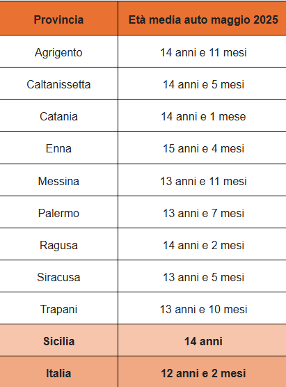 Secondo i dati, le auto più vecchie circolano a Enna (15 anni e 4 mesi), Agrigento (14 anni e 11 mesi) e Caltanissetta (14 anni e 5 mesi). Meglio di Trapani fanno solo Palermo (13 anni e 7 mesi) e Siracusa (13 anni e 5 mesi), la provincia con i veicoli mediamente più "giovani".