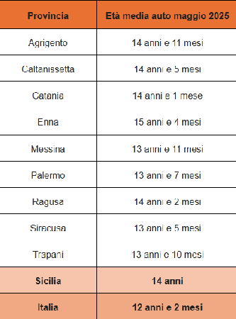 Un valore preoccupante, ma non isolato: in tutta l’Isola l’età media delle auto è in continua crescita, e la Sicilia si conferma ancora una volta la regione con le auto più vecchie d’Italia, con una media regionale di 14 anni, contro i 12 anni e 2 mesi della media nazionale.