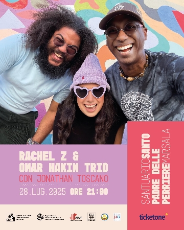 Una serata di grande musica jazz a Marsala, in uno dei luoghi più suggestivi della città. Lunedì 28 luglio 2025, alle ore 21:00, il Santuario Santo Padre delle Perriere ospiterà il concerto del Rachel Z & Omar Hakim Trio, con la partecipazione speciale di Jonathan Toscano.