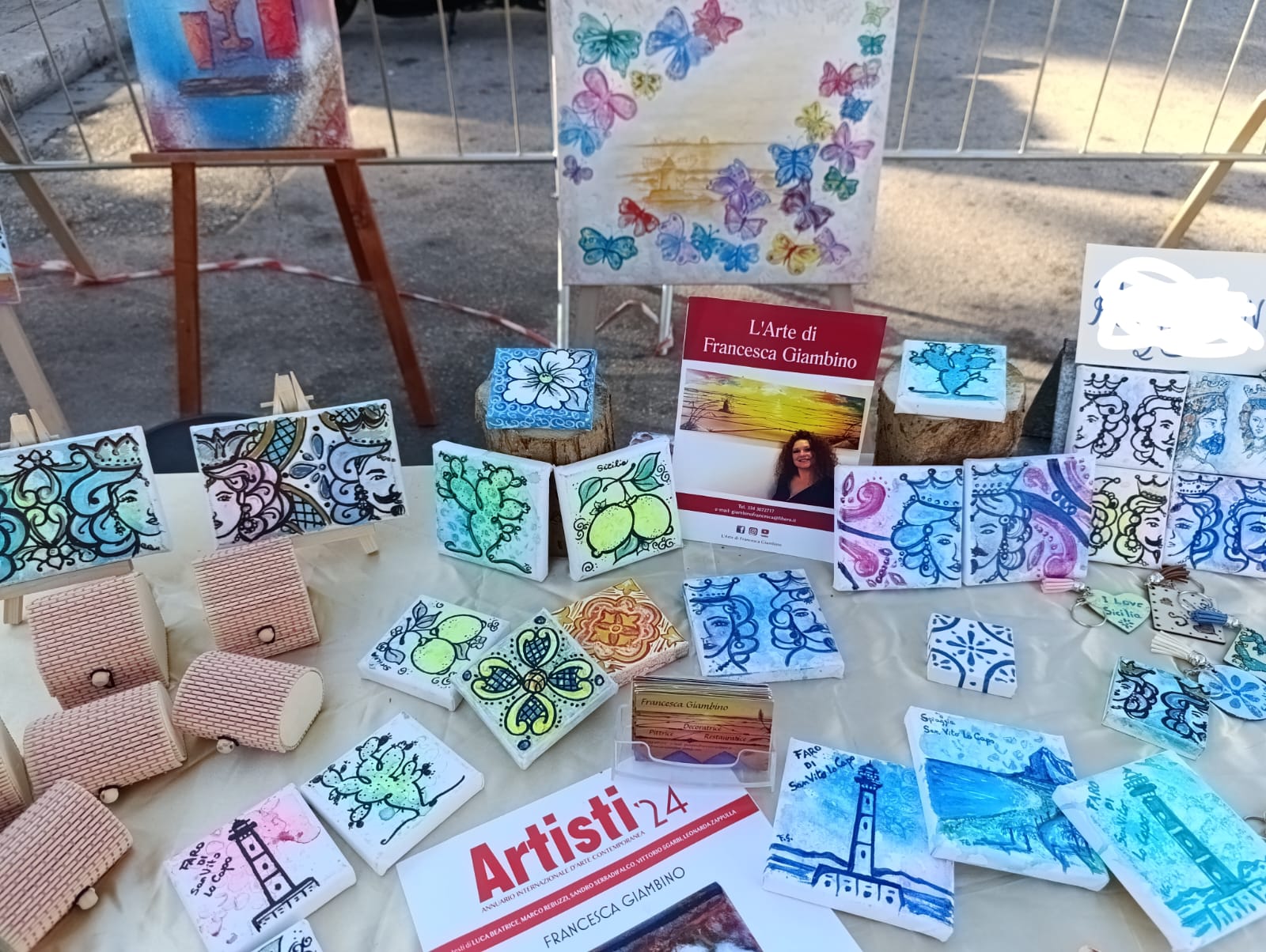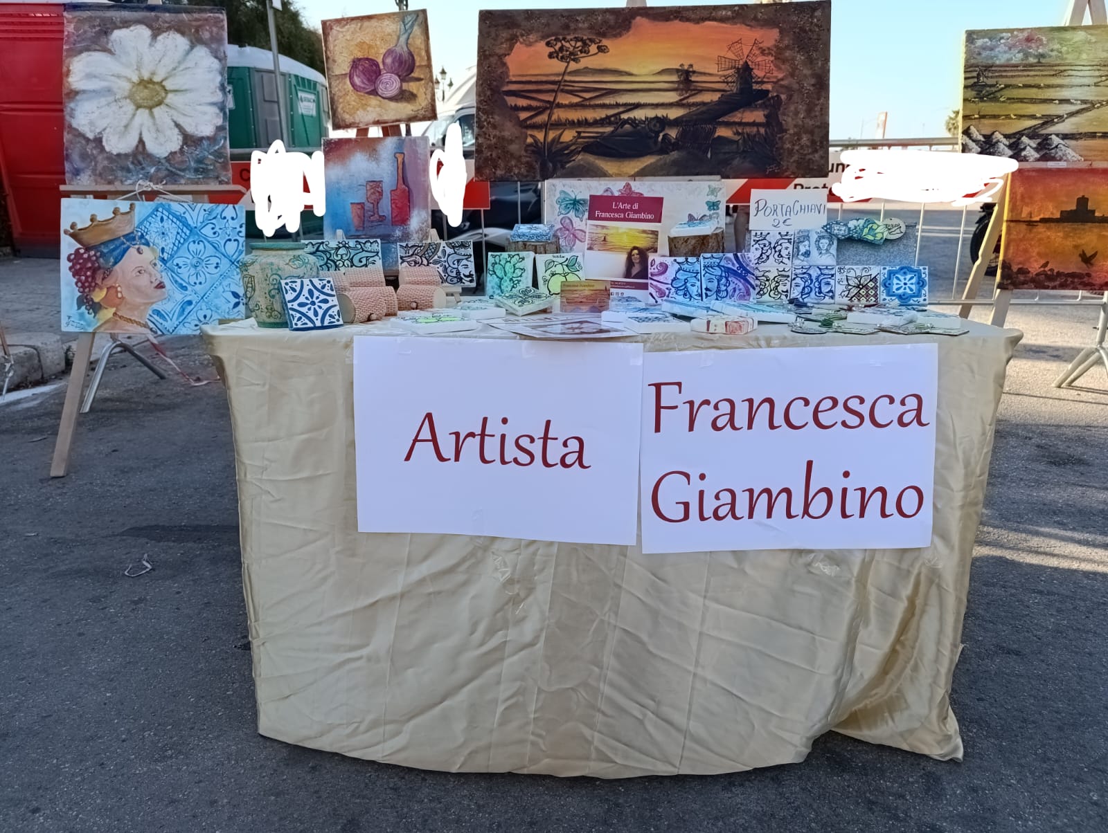 Alla mostra mercato ViVi Trapani, in corso fino al 20 luglio in Piazza Vittorio Emanuele, si dedica grande attenzione all’arte locale: tra gli stand, c'è l’esposizione delle opere di Francesca Giambino, artista di Misiliscemi, presente con una selezione di alcune sue opere e di dipinti già noti e apprezzati dal pubblico