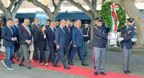 Schifani: «Verità non più rinviabile. La Sicilia non dimentica» - «A trentatré anni dalla strage di via D’Amelio, la Sicilia rende omaggio a Paolo Borsellino e agli agenti della sua scorta - Agostino Catalano, Walter Eddie Cosina, Emanuela Loi, Vincenzo Li Muli e Claudio Traina - caduti per difendere lo Stato e la legalità. Il loro sacrificio ci impone di non fermarci. La verità su quella strage non può più essere rinviata. È un dovere morale e istituzionale che lo Stato deve assolvere fino in fondo. Come presidente della Regione rinnovo l’impegno a sostenere ogni passo verso la piena verità, per rispetto delle vittime e per dare giustizia a un’intera comunità che chiede chiarezza, memoria e coraggio». Lo dichiara il presidente della Regione Siciliana Renato Schifani, che stamattina alla Caserma Lungaro a Palermo, insieme al ministro dell'Interno Matteo Piantedosi e al capo della Polizia Vittorio Pisani, ha deposto una corona d'alloro in memoria dei caduti del 19 luglio 1992.