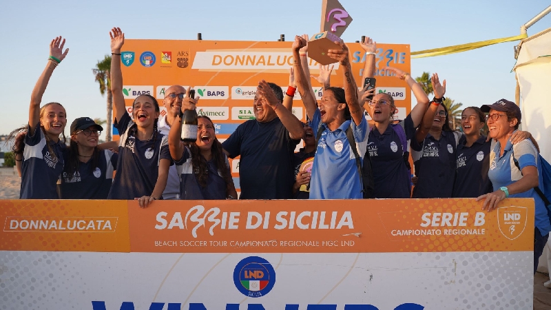Va in archivio la seconda edizione di “Sabbie di Sicilia”, il campionato regionale di Serie B, indetto dalla Lega Nazionale Dilettanti Sicilia e promosso da I Soci. Conquistano il titolo siciliano di beach soccer la Uniscuole Italia Vittoria, nel maschile, e la Virtus Femminile Marsala, nel femminile. I verdetti sono maturati al termine della tappa finale, svoltasi sulla splendida arena americana di Donnalucata (Scicli) davanti a una straordinaria cornice di pubblico. Tre giorni di gare e di emozioni. La Uniscuole Vittoria si impone sul Taormina Soccer, bissando il successo ottenuto a Catania. Sferrazza e compagni chiudono i conti nei primi due tempi, grazie alle reti di Assenza e alla doppietta di Busacca. Nel terzo tempo non mancano le emozioni: il Taormina ci prova con Tucci e La Torre, ma è ancora Busacca, dopo la straordinaria rete di Marino, a siglare la tripletta personale e a conquistare il premio come miglior giocatore della finale regionale (l’ultimo atto si chiude 5-2). Il terzo posto va allo Sport Palermo, vittorioso per 7-5 sul Cartia Plant. Per i rosanero in gol Raccuglia (3), La Spisa (2), Porcelli, Tinnirello, mentre per i locali vanno in gol Drago (2), Carpinteri, Gazzé e Lachina. In semifinale, la Uniscuole Vittoria aveva superato lo Sport Palermo per 4-1, mentre il Taormina Soccer aveva avuto la meglio sul Cartia Plant con un netto 7-3. Chiude al quinto posto il Pro Ragusa, che nella finale di consolazione ha battuto lo Scicli per 5-3.