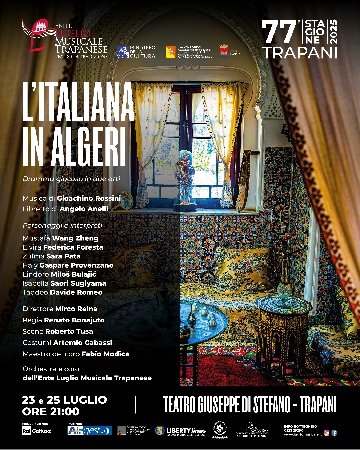 A completare il cast troviamo Miloš Bulajić nel ruolo dell'innamorato Lindoro e Davide Romeo che darà vita al buffo Taddeo. Il regista Renato Bonajuto ha immaginato una messa in scena che pone al centro il mare Mediterraneo come elemento simbolico: le acque che dividono l'Italia dall'Algeria diventano emblema di esplorazione e riscatto. Isabella incarna la tenacia e la sagacia femminile in grado di guidare con raffinatezza un mondo di uomini smarriti. L’ambientazione visiva restituisce un’Algeri immaginifica dove gli elementi moreschi si fondono con le suggestioni di drappi e tessuti, elementi caratterizzanti sia l’harem che le vele. Scene di Roberto Tusa e costumi di Artemio Cabassi completeranno questo universo che fonde esotico e mediterraneo. Isabella, con la sua intelligenza e il suo fascino, riesce a ribaltare le sorti della storia, liberando non solo se stessa e il suo amato, ma tutti gli italiani prigionieri del Bey. Un messaggio di emancipazione che risuona particolare attualità. La produzione vedrà impegnati l'Orchestra e il Coro del Luglio Musicale Trapanese, sotto la direzione di Mirco Reina, con la preparazione del coro affidata a Fabio Modica.