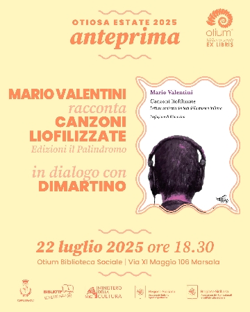 Martedì 22 luglio alle 18.30, all’Otium di via XI Maggio 106 a Marsala, Mario Valentini presenta Canzoni liofilizzate.