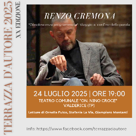Renzo Cremona ha già conquistato il pubblico trapanese con il suo lavoro “Cartoline da Trapani”, una raccolta di testi che ha esplorato i luoghi, le atmosfere e i riti della città e dei suoi dintorni, presentata con successo anche nel cartellone degli Amici della Musica di Trapani. L’incontro del 24 luglio sarà quindi un’opportunità unica per vivere ancora una volta la sua scrittura in un contesto che ben si adatta alla sua capacità di far dialogare le parole con la realtà che ci circonda. La serata, organizzata nell’ambito della XX edizione di Terrazza d’Autore, rappresenta un’occasione imperdibile per immergersi nel mondo di un autore che ha fatto della ricerca linguistica e della scrittura il proprio strumento di riflessione sul mondo e sull’individuo. Un viaggio nella parola, dunque, che promette di essere intenso e ricco di spunti di riflessione, perfetto per chi cerca una narrazione che sfida i confini del tempo e dello spazio.