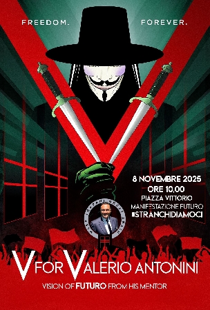 8 novembre, ore 10, Piazza Vittorio: grande manifestazione contro il sindaco Tranchida, accompagnata da una locandina con una vistosa "V" rossa. “V per Vendetta" precisa lui.