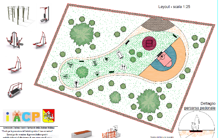 Il progetto prevede la realizzazione di percorsi fitness e piazzole attrezzate con strumenti per l’allenamento all’aperto, corredate da pavimentazione antitrauma. Un impianto pensato per persone di tutte le età, che coniuga sport, socialità e sostenibilità.