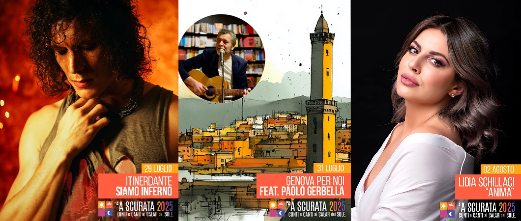 Giovedì 31 luglio alle 19 sarà protagonista la grande musica con il concerto “Genova per noi” a cura dell’Officina artistica Carpe Diem con il cantautore Paolo Gerbella. Un viaggio di musica e poesia tra l’arte di De André, Tenco, Paoli, Lauzi e Bindi e la grande letteratura, la poesia beat, la chanson francese, il folk nordamericano e la filosofia esistenzialista europea. Un percorso fatto di musica dal vivo e letture sceniche dove le melodie e i testi dei cantautori incontrano le idee di Jean-Paul Sartre, Raymond Queneau, Jacques Brel, Georges Brassens, Leonard Cohen, Charles Aznavour, Bob Dylan, Allen Ginsberg, Jack Kerouac, William Burroughs e Gregory Corso. Dal mare di Marsala si leva un canto che vuole essere omaggio a Genova, che come storicamente la città della rassegna ‘a Scurata ha saputo aprirsi al mondo, facendo della contaminazione la sua ricchezza. La cifra è quella dell’incontro lingue e stili, tra ribellione e malinconia. Ad impreziosire lo spettacolo ci sarà Paolo Gerbella, cantautore e autore, artista di punta della “canzone-racconto”. Al suo attivo i romanzi “Ciaspole” e “Vico dell’amor perfetto”, e i CD “Tempo Parallelo”, “Io, Dino”, sul poeta del ‘900 Dino Campana, “La Regina” e “Schiena dritta” per Gianmaria Testa. A calcare il palcoscenico con Paolo Gerbella saranno: Fabio Gandolfo al piano; Dario Li Voti alla batteria; Gregorio Caimi alle chitarre; Giacomo Bertuglia al basso; i cantanti Pierpaolo Marino, Riccardo Sciacca, Lea Pavia e Lucrezia Benigno e Giada Costa che sarà la voce narrante dando vita alle parole di: Albert Camus, Tommaso Bordonaro, Giorgio Caproni, Edoardo Sanguineti, Eugenio Montale e Ignazio Buttitta. Biglietti su https://mac.organizzatori.18tickets.it/event/43500