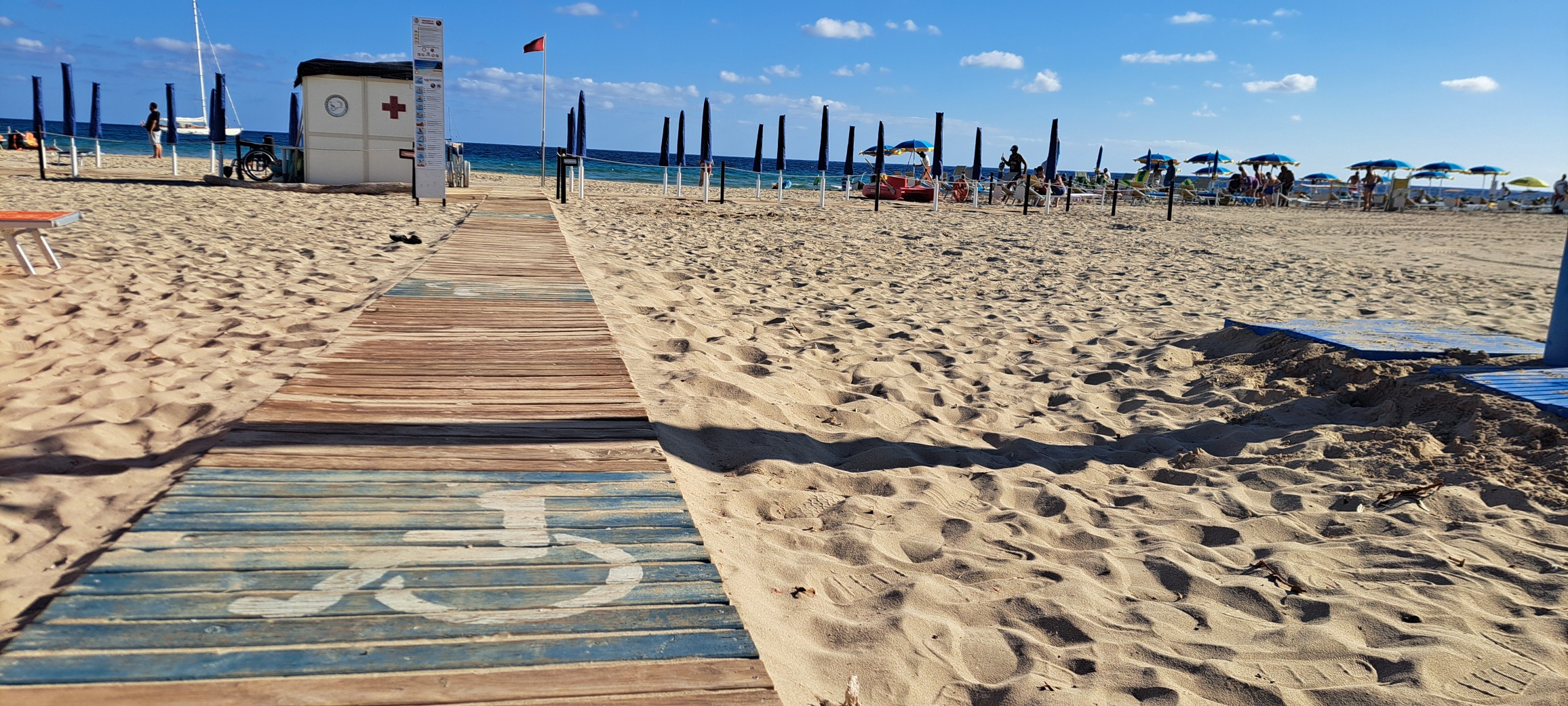 La Spiaggia ZeroBarriere si distingue per la sua capacità di offrire accessibilità a 360 gradi. Con circa 40 postazioni complete di lettini, ombrelloni e pedane, ogni angolo della spiaggia è pensato per garantire il massimo comfort e autonomia. Ma ciò che rende questo luogo davvero speciale sono gli ausili speciali, come le sedie Job, che permettono a chiunque di accedere all’acqua e di fare il bagno in totale sicurezza e serenità.
