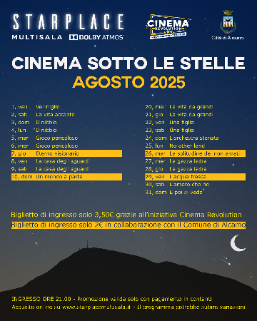 Prosegue ad Alcamo la rassegna “Cinema sotto le stelle”, organizzata dalla multisala Starplace in collaborazione con il Comune, nell’ambito dell’iniziativa nazionale Cinema Revolution.