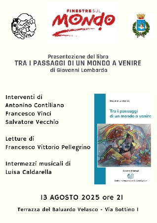 A quasi un anno dalla sua scomparsa, Marsala rende omaggio a Giovanni Lombardo, figura di spicco della cultura cittadina, con la presentazione postuma della sua ultima opera “Tra i passaggi di un mondo a venire”. L’appuntamento è per mercoledì 13 agosto alle ore 21, sulla terrazza del Baluardo Velasco, in via Bottino 1, nell’ambito della rassegna culturale dell'associazione Finestre sul mondo.