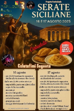 L’estate calatafimese continua a sorprendere e coinvolgere con un nuovo appuntamento che unisce cultura, folklore e gastronomia: il 16 e 17 agosto 2025 il centro storico si animerà con “Serate Siciliane”, evento inserito nel cartellone di Festivalando 2025 e promosso dall’amministrazione comunale, assessorato al turismo guidato da Piera Prosa, con il sostegno dei fondi ARS.