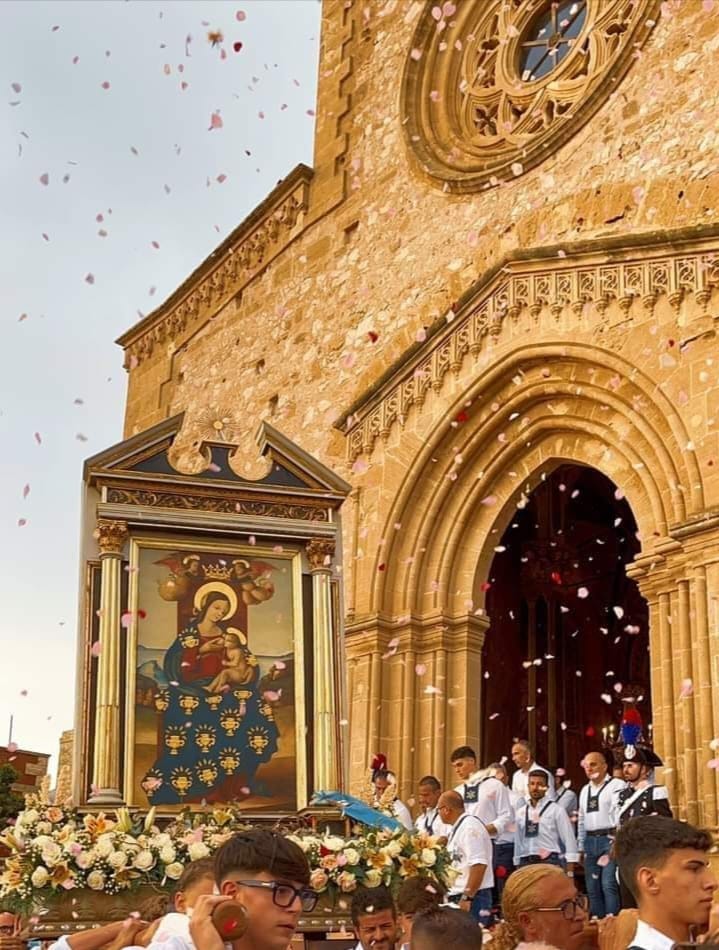 Custonaci è una città chiaramente identitaria che ha, da sempre, sviluppato una forte devozione mariana e che si manifesta, in particolar modo, proprio nei giorni dei festeggiamenti legati alla sua Madre celeste. Il culto della Madonna di Custonaci risale, infatti, al XVI secolo e narra la storia di un’imbarcazione che, trasportando la sacra Icona della Vergine, riuscì a salvarsi da una violenta tempesta proprio grazie alla sua benevole intercessione. I marinai, grati per il miracolo, trasportarono il taumaturgico Quadro nella vicina collina di Custonaci e lo collocarono in una cappelletta già esistente, che rappresenta, di fatto, il primo nucleo dell’attuale Santuario.