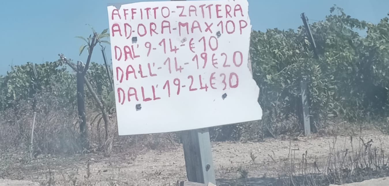 Intanto, accanto alle zattere compare anche un cartellone che pubblicizza l’attività di noleggio. Le tariffe sono chiare: