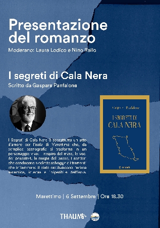 La suggestiva cornice dello Scalo Vecchio di Marettimo accoglierà, sabato 6 settembre alle ore 18.30, la presentazione ufficiale del romanzo I Segreti di Cala Nera, pubblicato da Thauma Editore. L’appuntamento rientra nella rassegna letteraria “Libri e letture di qua e di là dal mare”, organizzata dall’associazione culturale CSRT Marettimo, che da anni valorizza il dialogo tra cultura e territorio.
