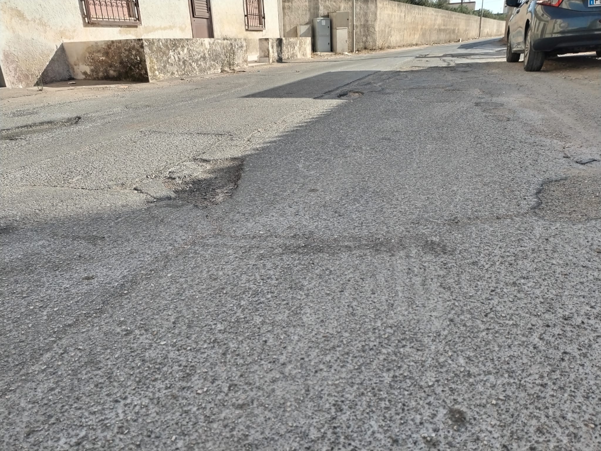 Una delle segnalazioni più gravi arriva da Denis, un cittadino marsalese, che denuncia le condizioni della strada di fronte al kartodromo, in zona Santo Padre delle Perriere: “La strada è molto pericolosa. Sembra più una mulattiera che una strada asfaltata”. Le foto mostrano chiaramente una carreggiata dissestata, con tratti che ricordano un nastro di sterrato. Una situazione che mette quotidianamente a rischio chi la percorre.