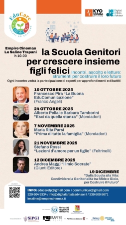 Come educare figli sereni in un mondo dominato da social media e videogiochi? Come affrontare capricci e crisi adolescenziali senza perdere la pazienza? A queste domande risponderà la nuova “Scuola Genitori”, in partenza il 10 ottobre all’Empire Cinemas Le Saline di Trapani: un ciclo di sei incontri pensati per offrire alle famiglie strumenti pratici, non teorie astratte, per affrontare le sfide quotidiane dell’educazione.