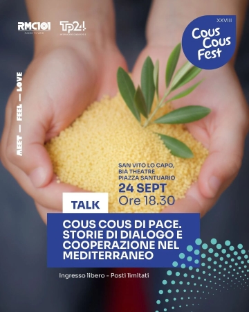 Il talk di oggi si inserisce nella 28ª edizione del Cous Cous Fest, il festival internazionale dell’integrazione culturale che fino al 28 settembre trasformerà San Vito Lo Capo in una capitale mondiale del dialogo. Dieci giornate dedicate alla convivialità attraverso sfide culinarie, degustazioni, concerti, spettacoli dal vivo e incontri culturali, celebrando il cous cous come autentico simbolo di pace, dialogo e condivisione tra i popoli.