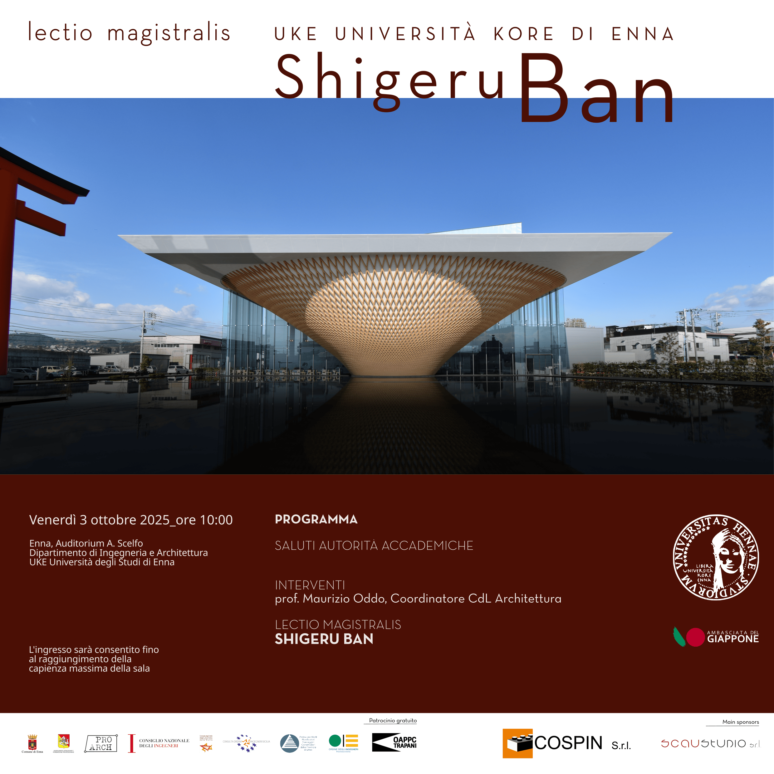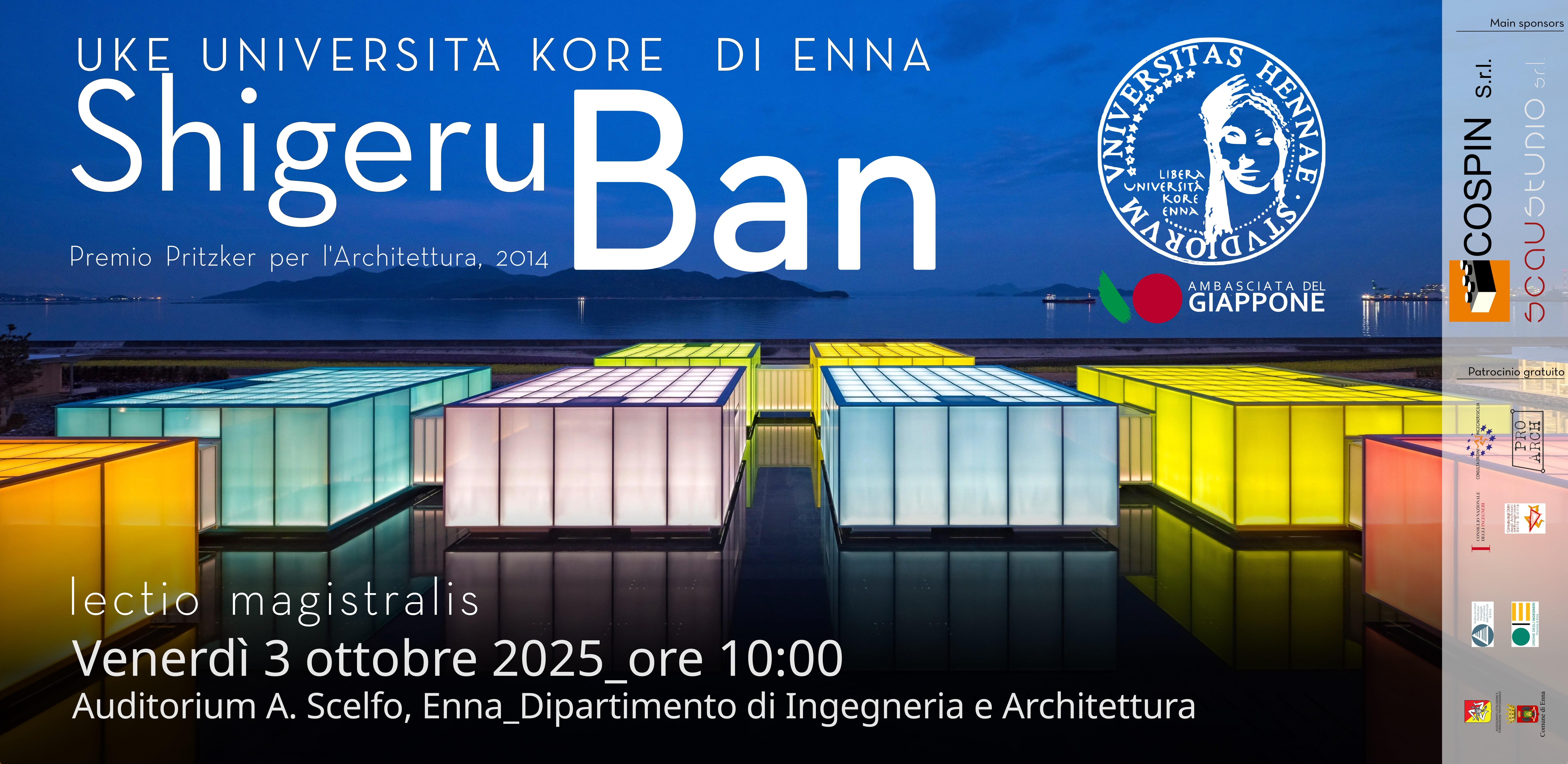 Domani 3 ottobre 2025 l’Auditorium dell’Università Kore di Enna ospiterà un evento di rilevanza internazionale: la lectio magistralis di Shigeru Ban, tra i più grandi architetti viventi, vincitore del Premio Pritzker 2014, del Praemium Imperiale 2024 e consulente dell’UNHCR.