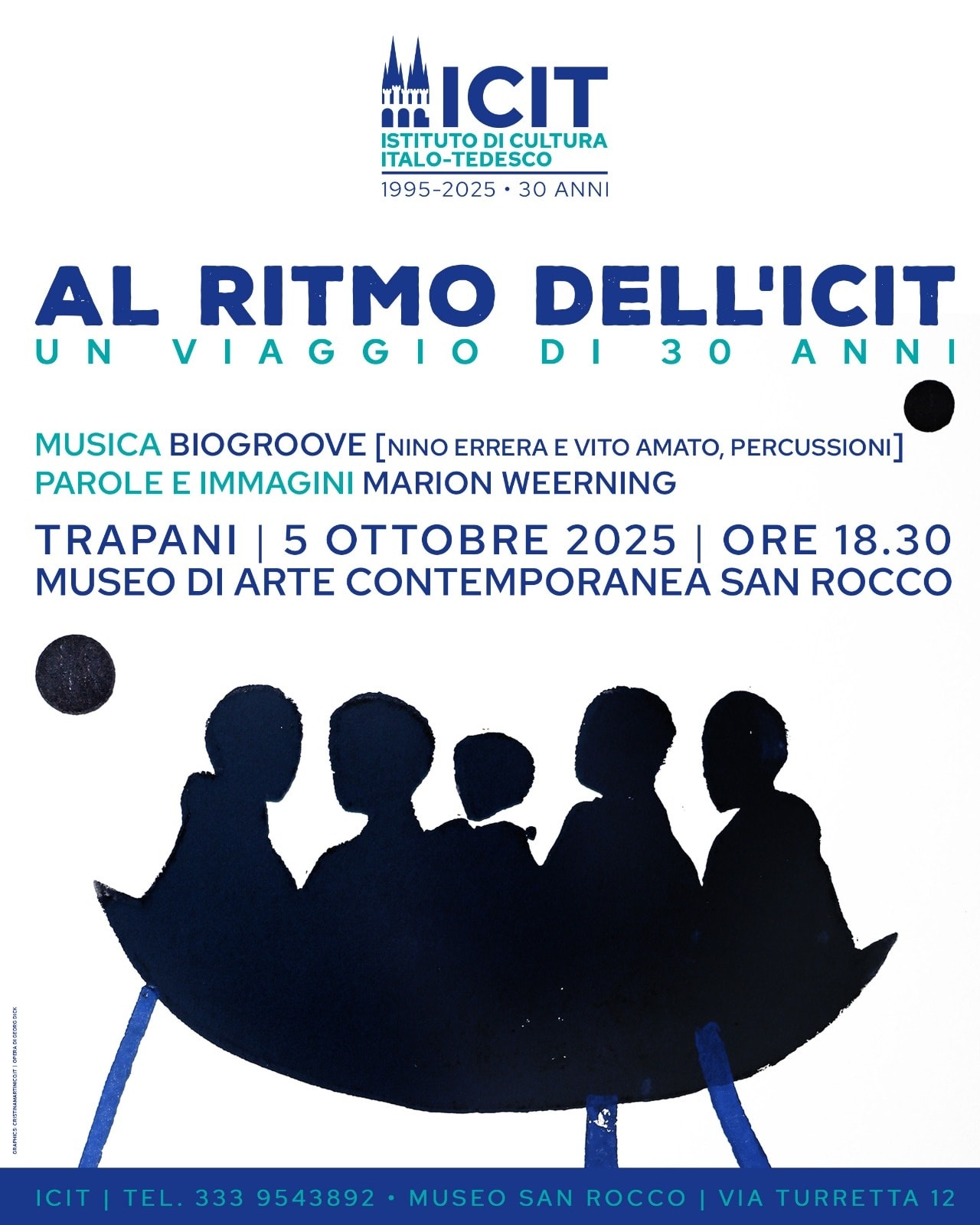 TRAPANI - L’Istituto di Cultura Italo-Tedesco di Trapani celebra i 30 anni di attività domenica 5 ottobre alle 18.30 al Museo San Rocco con l’evento “Al ritmo dell’ICIT. Un viaggio di 30 anni”. La serata prevede musica dal vivo del duo “Biogroove”, proiezioni video e i racconti della presidente Marion Weerning. Sarà presente anche Andreas Krüger dell’Ambasciata tedesca.