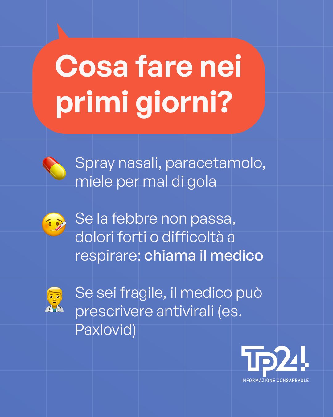 Se i sintomi peggiorano, la febbre non scende o compaiono difficoltà respiratorie, è necessario rivolgersi al medico di fiducia.