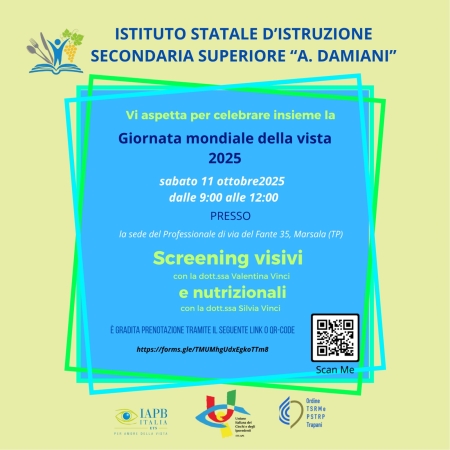 In occasione della Giornata Mondiale della Vista 2025, l’Istituto di Istruzione Superiore “Abele Damiani” di Marsala rinnova il proprio impegno nella promozione della salute e del benessere, organizzando una mattinata interamente dedicata alla prevenzione visiva e alla corretta alimentazione.