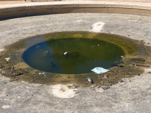Oggi siamo ad ottobre, e la situazione è perfino peggiore. Niente più acqua — o meglio, solo qualche pozza stagnante — ma la vasca è piena di bottiglie, cartacce, rifiuti di ogni genere. Uno spettacolo desolante, come testimoniano le nostre foto.