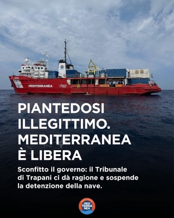 I promotori della campagna Trapani per Mediterranea Saving Humans esprimono profonda soddisfazione per la decisione del Tribunale di Trapani che ha annullato il