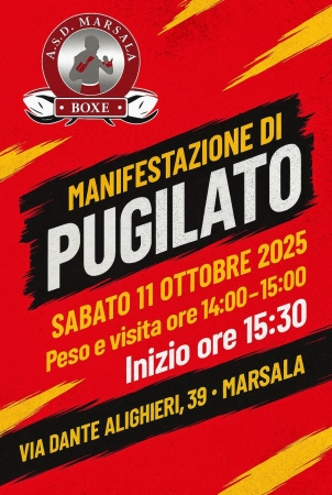 Nei propri locali di Via Dante Alighieri 39, la Marsala Boxe ha organizzato per sabato 11 ottobre con inizio alle ore 15.30 (operazioni di peso e visita medica dalle 14.00 alle 15.00) una Manifestazione di Pugilato di preparazione ai prossimi Campionati Europei che si terranno nel novembre 2025 a Dublino in Irlanda in cui, il Team di Tecnici della Rappresentativa Siciliana composto da Carmelo Mammana della Eagle Boxe di Avola SR e Vincenzo Minardi della Marsala Boxe, schiereranno i due atleti lilibetani Yannick De Mutiis e Giuseppe Putaggio, entrambi per la categoria 70 Kg Under19. Un importante momento di condivisione, un momento unico per fare squadra, spronare i giovani atleti e vivere insieme lo Sport nelle sue emozioni più autentiche. La manifestazione vuole essere un biglietto da visita da consegnare ai tanti giovani che vogliono misurare le proprie capacità nel rispetto assoluto dell’avversario e delle regole di questo spettacolare Sport.