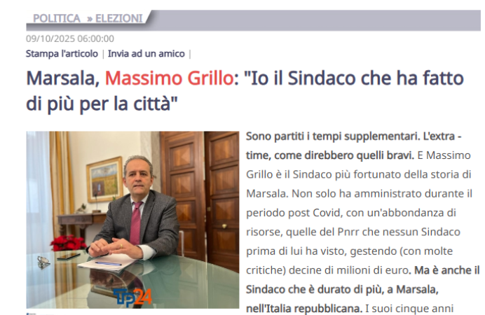 Buongiorno Direttore, ho letto l’articolo in cui il Sindaco di Marsala, Massimo Grillo, si definisce "quello che ha fatto di più per la città" mi è impossibile non commentare.