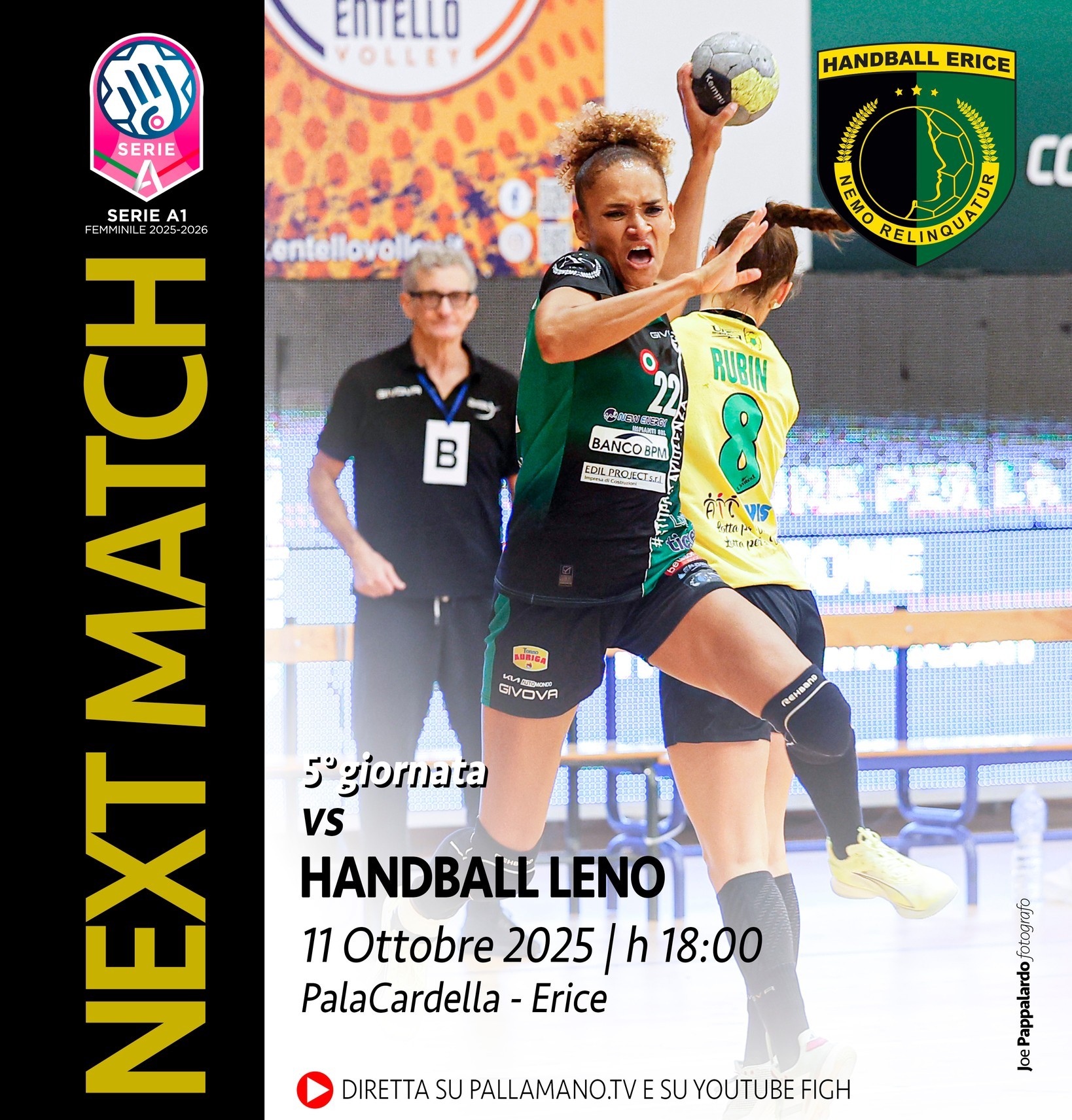 • Handball serie A1 – L’Handball Erice vince il recupero di mercoledì scorso contro Mestrino e si riporta in testa alla classifica. L’impegno europeo di Coppa aveva di-sincronizzato i risultati di regular season, ma le Arpìe di questa stagione nulla lasciano al caso e si riportano subito in vetta. Un gruppo coeso e ben motivato che ha iniziato la stagione nel migliore dei modi. Sabato 11 alle ore 18: al PalaCardella andrà in scena la 5° di Campionato con le ericine pronte a ricevere la visita ed affrontare nel migliore dei modi il Leno. Diretta su pallamano.tv e su Youtube FIGH.
