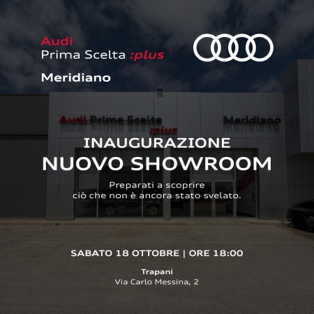 Siamo felici di invitarvi all’inaugurazione del nuovo showroom Audi Prima Scelta :plus Meridiano, in Via Carlo Messina 2, Trapani.