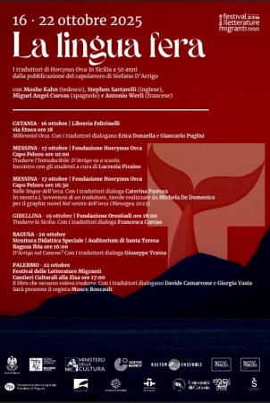 A Gibellina, il tour de "La Lingua Fera" farà tappa alla Fondazione Orestiadi con un incontro dal titolo “Tradurre la Sicilia” che metterà in dialogo i traduttori con Antonella Corrao, presidente del Comitato scientifico di Fondazione Orestiadi. La serie di incontri si concluderà il 22 ottobre a Palermo, nell'appuntamento di apertura dell'XI edizione del Festival delle Letterature Migranti.