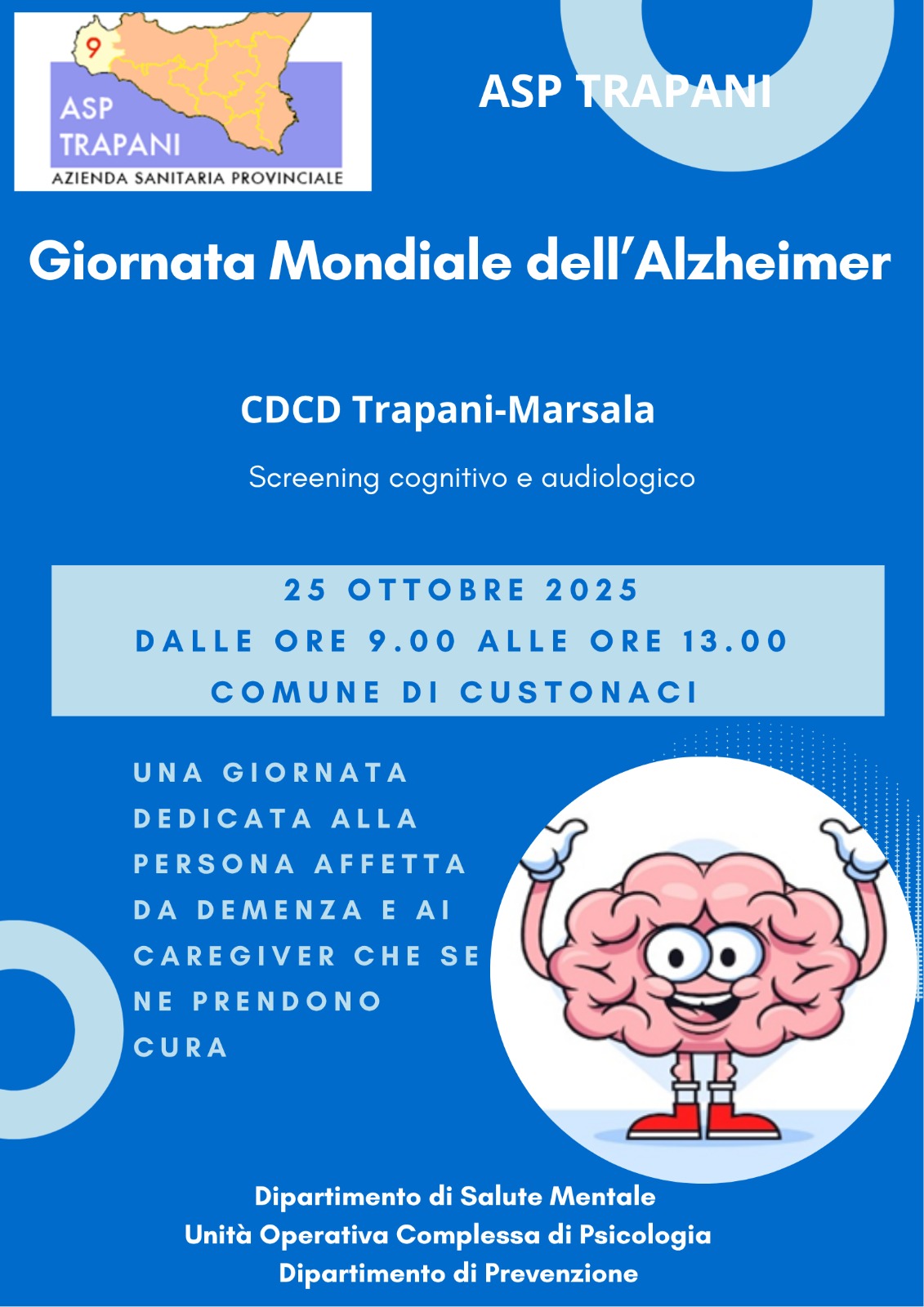 Sabato 25, in occasione della Giornata mondiale dell’Alzheimer, l’ASP di Trapani offrirà screening cognitivi e audiologici gratuiti, mentre il laboratorio “Cresciamo insieme – Pupi di Callivari” farà rivivere l’arte dell’artigianato siciliano.