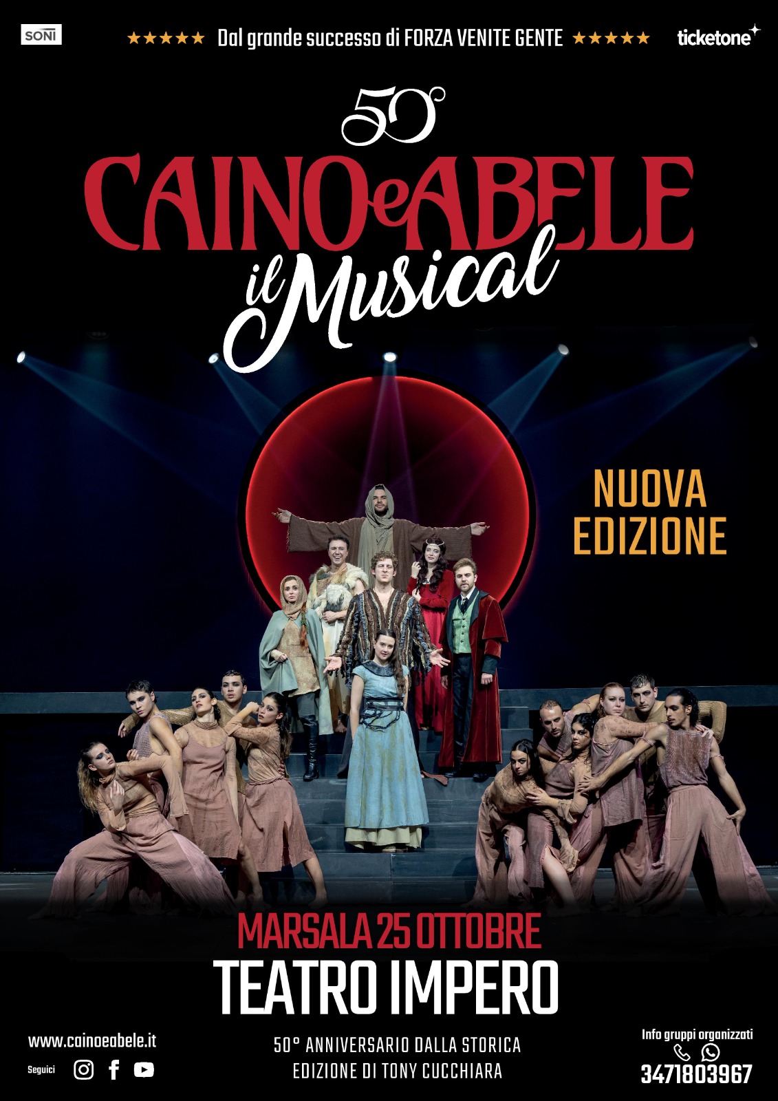MARSALA - Dopo il successo in tutta Italia, fa tappa anche a Marsala “Caino e Abele – Il Musical”, l’opera di Tony Cucchiara diretta da Ariele Vincenti che racconta, tra musica e teatro, l’eterna lotta tra bene e male. Lo spettacolo andrà in scena il 25 ottobre alle 21.00 al Teatro Impero. I biglietti, da 25 a 40 euro, sono disponibili online sul sito ufficiale del musical e al botteghino del Teatro Golden di Palermo. Info sulla pagina Facebook del musical o al numero 347 1803967 (anche per acquisti di gruppo).