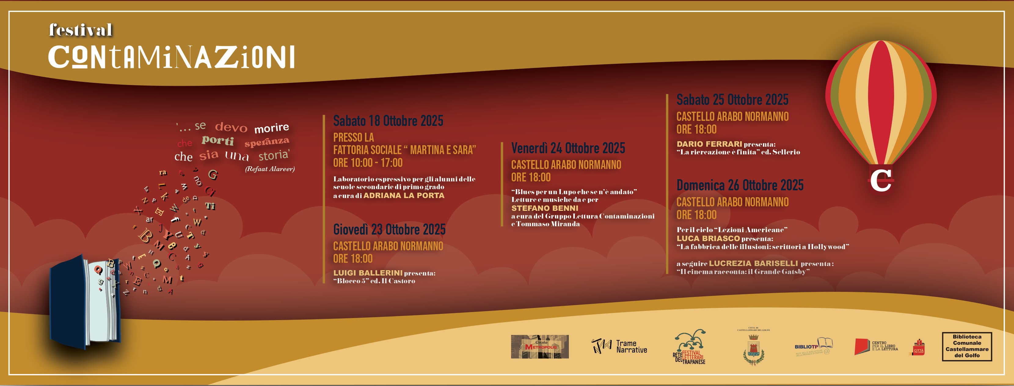 CASTELLAMMARE DEL GOLFO - Nel fine settimana conclusivo del festival “Contaminazioni”, il 25 e 26 ottobre, il castello arabo normanno di Castellammare del Golfo ospiterà due appuntamenti centrali. Sabato 25, Dario Ferrari presenterà La ricreazione è finita, romanzo vincitore del Premio Flaiano e del Mastercard, in un dialogo con Gaetano Stellino e Maria Angela Galante sull’università italiana tra ironia e disincanto. Domenica 26, chiusura con l’americanista Luca Briasco e la studiosa Lucrezia Bariselli, protagonisti di un incontro dedicato al centenario de Il Grande Gatsby di Fitzgerald e al complesso rapporto tra Hollywood e la letteratura americana.