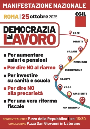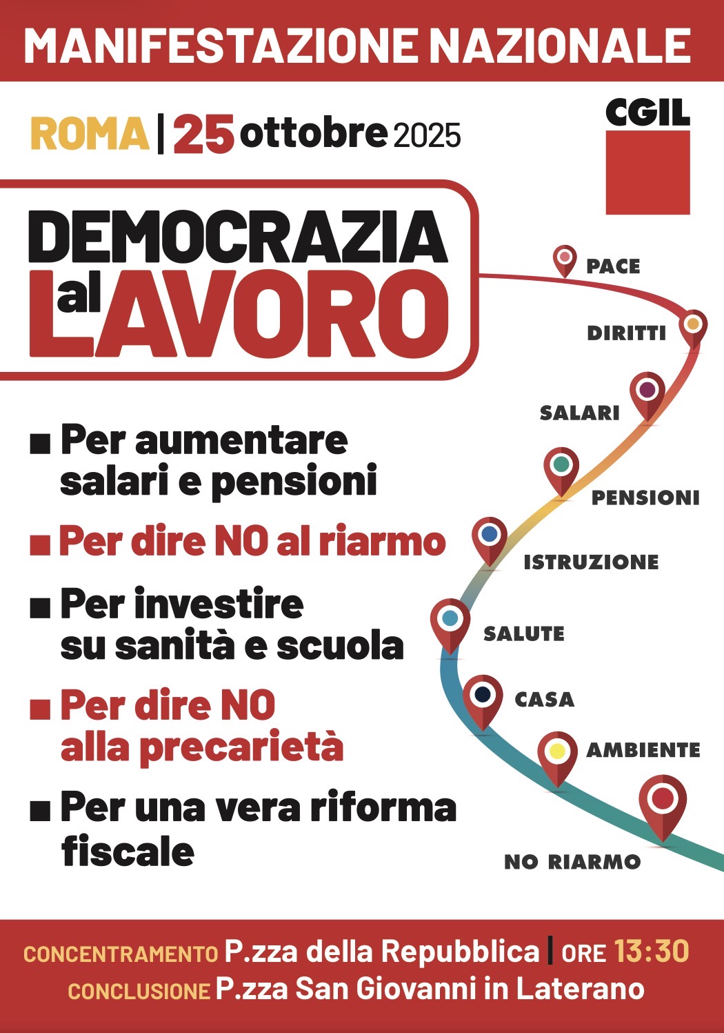 La Cgil si mobilita, scendendo in piazza, per chiedere l’aumento dei salari e delle pensioni, per dire no al riarmo, per chiedere investimenti sulla sanità e sulla scuola, per contrastare la precarietà nel mondo del lavoro e per una vera riforma fiscale.