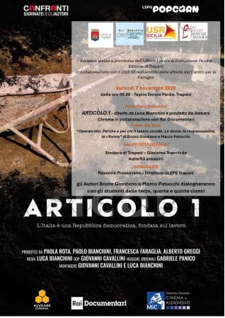 L’incontro principale si terrà alle 16.30 al Conservatorio “Antonio Scontrino”, con la partecipazione degli autori che dialogheranno con il pubblico sui temi della sicurezza nei luoghi di lavoro e delle “nuove schiavitù”. L’evento è sostenuto dalla Prefettura e dal Tribunale di Trapani, e coinvolge realtà pubbliche e private del mondo produttivo. La mattina, dalle 9.00 al Teatro T. Pardo, sarà proiettato il docufilm “Articolo 1” di Luca Bianchini, prodotto da Alveare Cinema con Rai Documentari, ispirato proprio al libro Operaicidio. Una testimonianza per sensibilizzare studenti e cittadini sul valore della legalità e della sicurezza come diritto fondamentale.