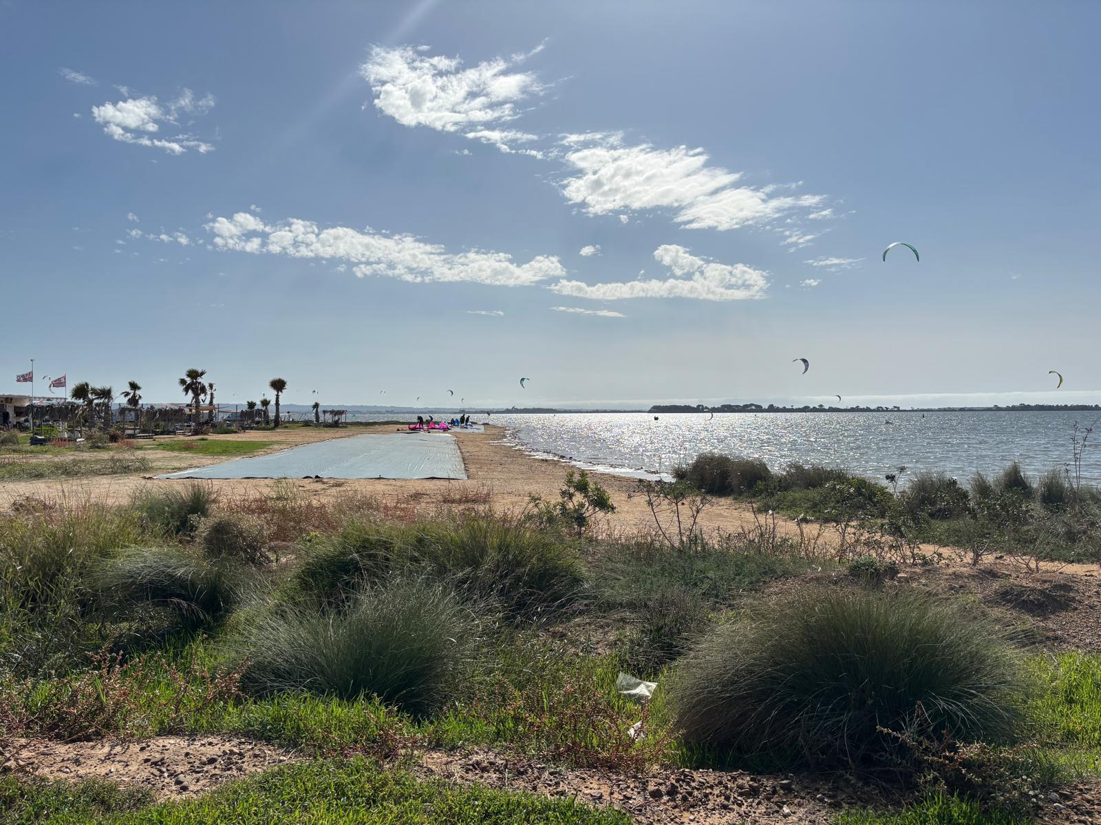 Qualche settimana fa avevamo già segnalato la presenza di una pista da skateboard, di fronte ad un chiosco, alterando l’equilibrio ambientale del luogo. Oggi mi mostriamo nelle foto, gli enormi teloni di plastica, lunghi decine di metri, che vengono stesi sulla spiaggia per sistemare corde e attrezzature dei kite.